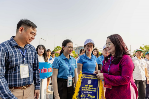Tặng cờ lưu niệm cho các trường tham gia hội thi |