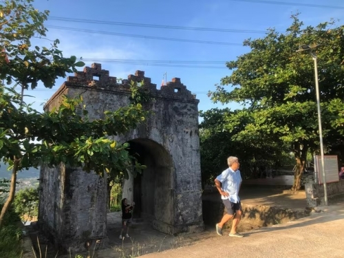 Cổng Hoành Sơn Quan cao hơn 4 m, hai bên thành dài 30 m, xây gạch trát vữa còn khá nguyên vẹn. |
