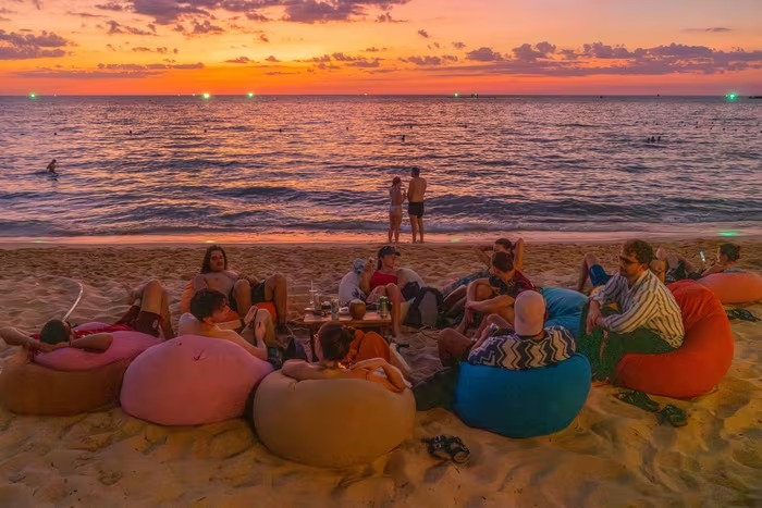 Khoảng 17h, nhiều du khách trong và ngoài nước bắt đầu đổ về các quán cà phê, beach bar (quán bar ven biển) dọc bờ biển Dương Đông, Dương Tơ (đặc khu Phú Quốc, tỉnh An Giang). Hướng trọn về biển Tây, những không gian này cho phép du khách nhâm nhi đồ uống, thưởng thức ẩm thực và chờ khoảnh khắc mặt trời "đi ngủ". |