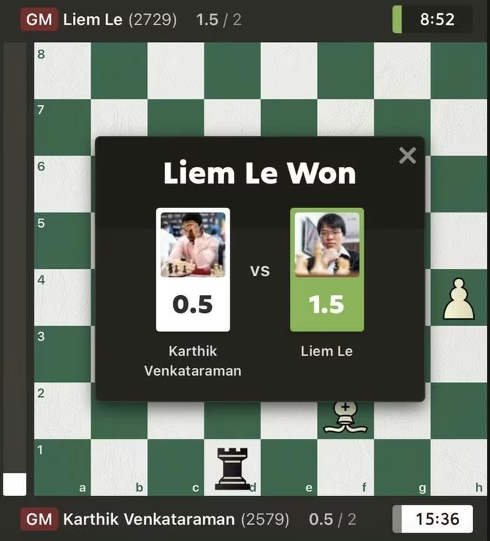 Biên bản ván đấu nghẹt thở giữa Lê Quang Liêm và Karthik Venkataraman |