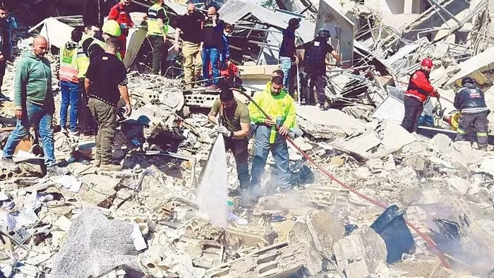 Lực lượng cứu hộ tìm kiếm người sống sót sau một vụ không kích tại Liban (Ảnh: Tân Hoa Xã) |