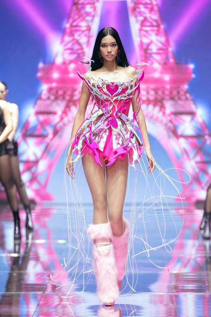 Mai Hoa trong hai phần thi catwalk đêm chung kết. (Ảnh: BTC)
