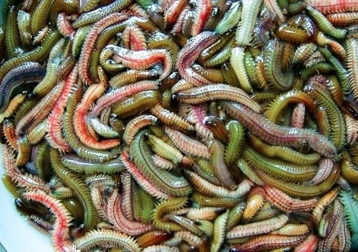 Không ít du khách lần đầu chứng kiến cảnh này đều tỏ ra e dè. Hình dạng mềm, nhiều đốt, chuyển động liên hồi khiến rươi trở thành món ăn “kén người nhìn”. |