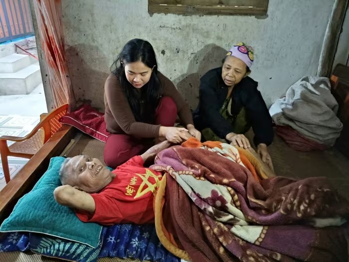 Cựu chiến binh Trần Văn Hòa nằm liệt, hoàn cảnh gia đình hết sức khó khăn. |