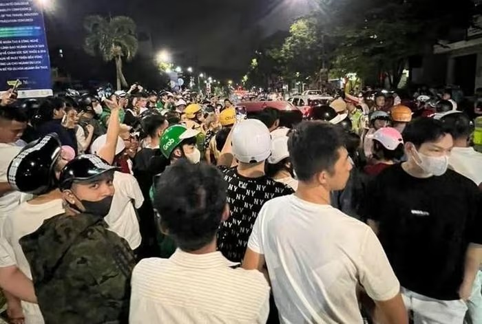 Đám đông người dân bức xúc trước hành vi của nữ ca sĩ Đ.K.T.