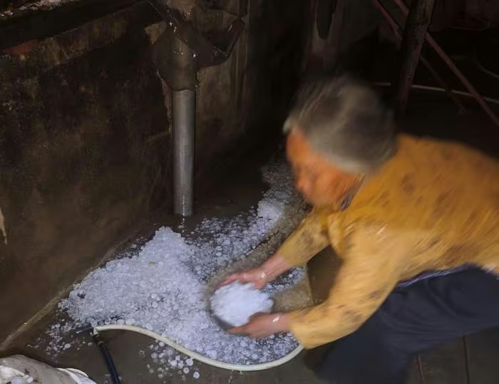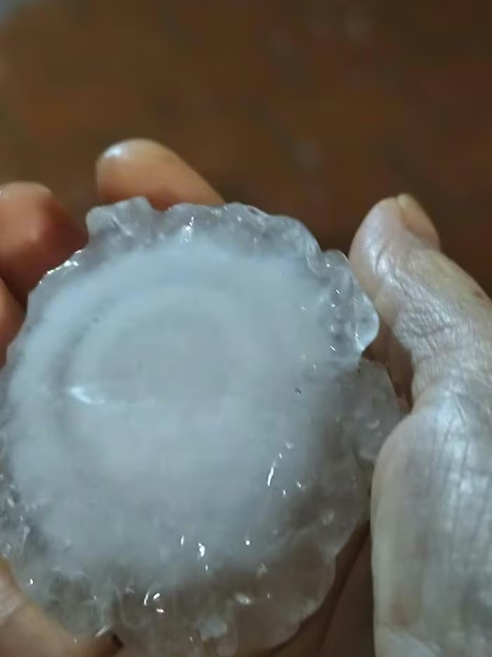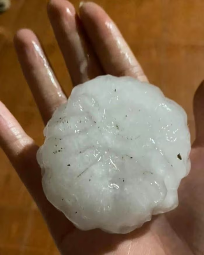 Mưa đá to bằng nắm tay gây ra nhiều thiệt hại cho người dân. Nguồn: MXH