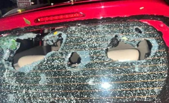 Mưa đá khiến kính xe ô tô bị hư hỏng. Ảnh: MXH |