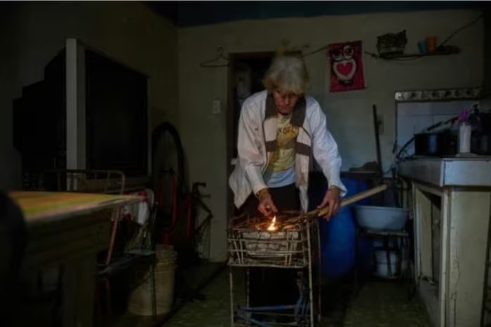 Một người dân Cuba nấu bữa tối trong thời gian mất điện ở Santa Cruz del Norte. Ảnh: AP |