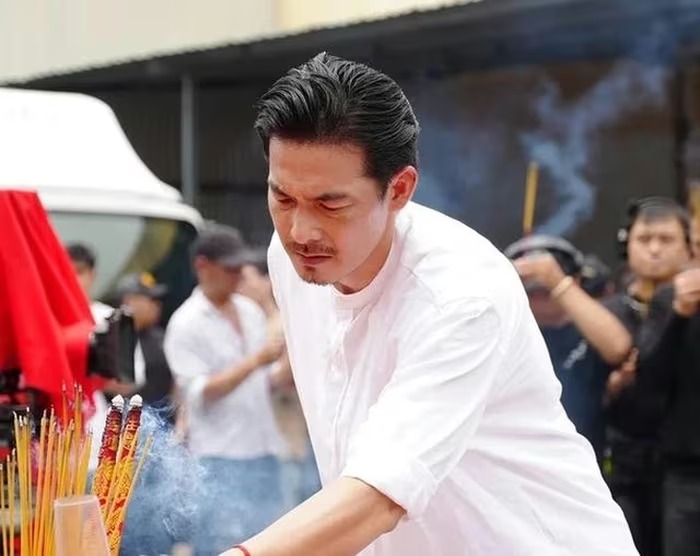 Quách Ngọc Ngoan trong lễ cúng khia máy một bộ phim điện ảnh. |