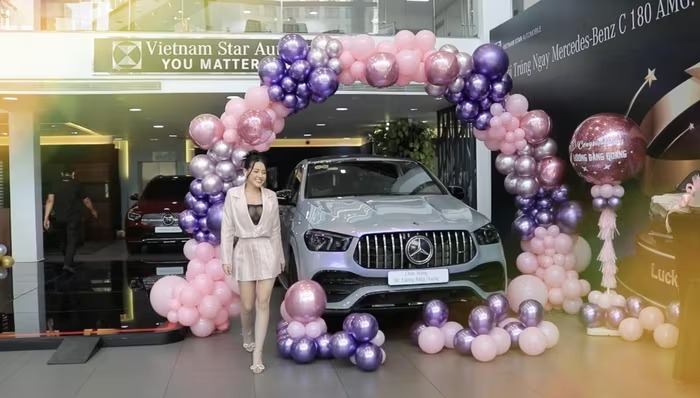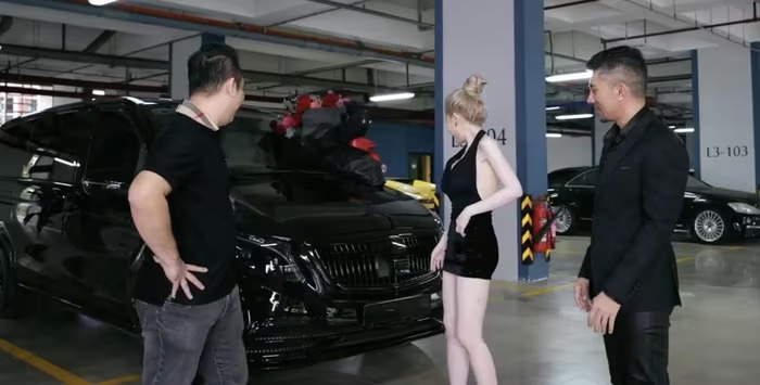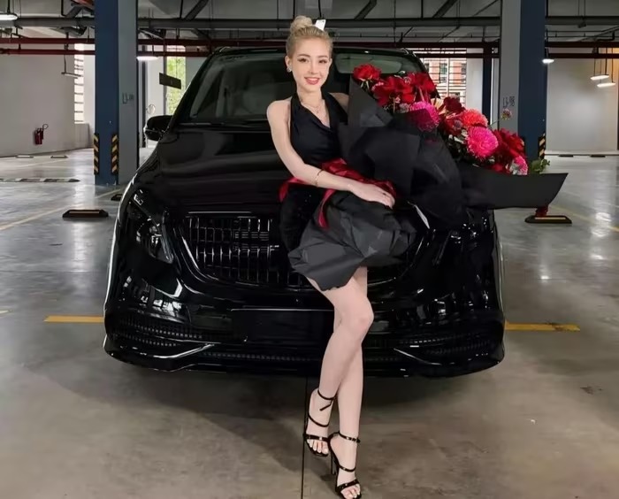 Tháng 7/2024, cặp đôi tiếp tục gây bất ngờ khi tậu thêm chiếc Mercedes-Benz V250 bản độ Maybach. Mẫu MPV siêu sang này được nâng cấp bodykit, làm lại nội thất kiểu "ánh sao". Xe sở hữu động cơ 4 xy lanh thẳng hàng, công suất 211 mã lực, mô men xoắn cực đại 350 Nm. Ảnh: FBNV. |