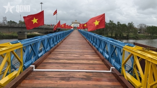 Cầu Hiền Lương vừa được tu bổ, phục vụ du khách tham quan dịp xuân Bính Ngọ 2026. |