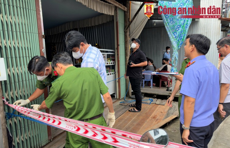 Cơ quan CSĐT Công an tỉnh Cà Mau đang khám nghiệm hiện trường để làm rõ vụ việc. |