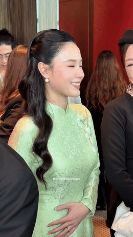 Nàng dâu hào môn gây chú ý khi tay liên tục xoa bụng. |