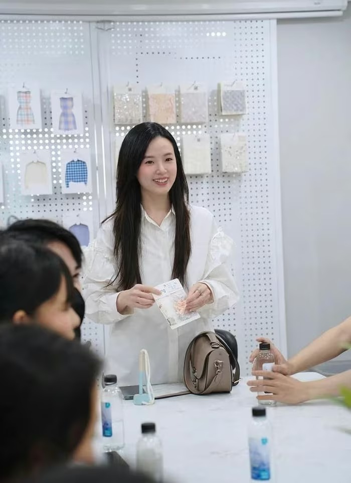 Midu diện sơ mi rộng trong một số lần đi dạy học. Ảnh: FBNV. |
