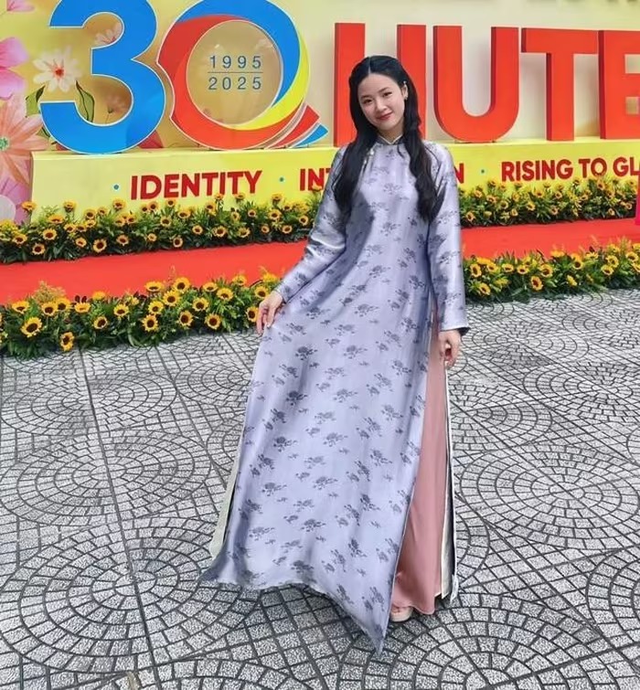 Midu mặc áo dài suông trong dịp 20/11. Ảnh: FBNV. |