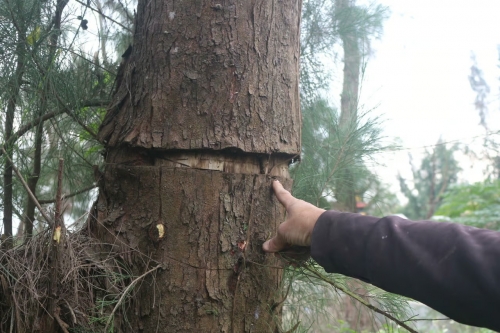 Khu vực rừng dương tại thôn Trung Vũ, xã Hòa Trạch xuất hiện dấu hiệu bóc vỏ phần thân sát gốc. |