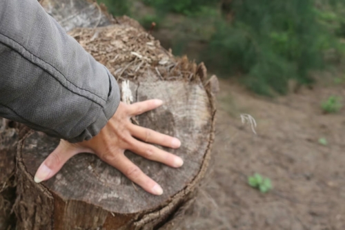 Gốc cây dương bị cắt bỏ, phần thân đã được di chuyển. |