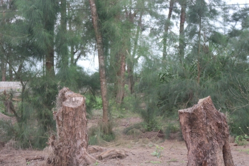 Hiện trường nhiều cây dương liễu bị chặt sát gốc tại khu rừng dương thôn Trung Vũ, xã Hòa Trạch. |