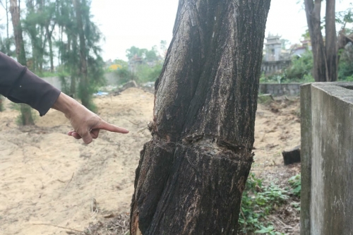 Theo người dân địa phương, rừng dương này trước đây vẫn sinh trưởng tốt, đóng vai trò quan trọng trong việc chắn gió, giữ cát, bảo vệ khu dân cư ven biển. Tuy nhiên, thời gian gần đây, nhiều cây có dấu hiệu bị hủy hoại rồi chết dần. “Cây bị khoanh gốc như vậy thì chắc chắn sẽ chết. Khi cây chết khô, việc chặt bỏ để xâm lấn đất làm nghĩa địa sẽ rất dễ dàng”, người dân bức xúc cho biết.