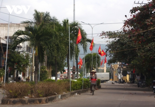 Những con đường ở làng biển Cảnh Dương rợp bóng cờ |
