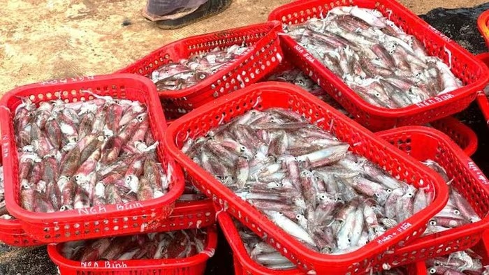 Ngay trên chợ cá, có rất nhiều xe đông lạnh nhập cá, mực. Hải sản về nhiều nhưng chỉ sau thời gian ngắn trao đổi, định giá, tất cả đều được chuyển lên xe đưa đi tiêu thụ hoặc chở về kho đông lạnh phân loại, cấp đông. Thời gian sau Tết, giá hải sản gần bờ tuy giảm hơn so với trước nhưng cũng không ảnh hưởng đến thu nhập của ngư dân.