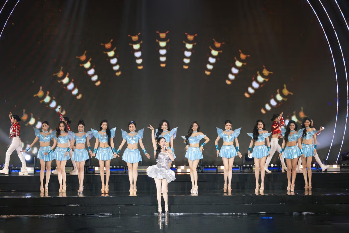 Các thí sinh trong trang phục dạ hội tại đêm chung kết. |