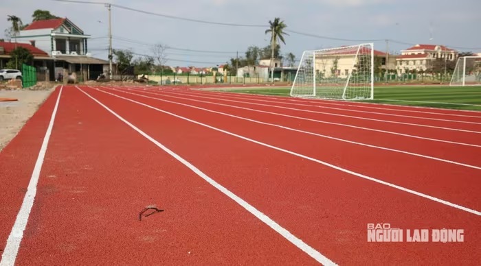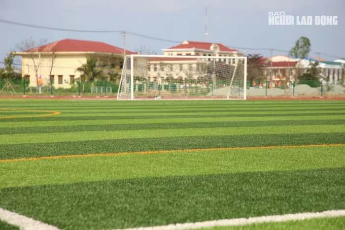 Cùng với nhà thi đấu, các hạng mục khác của trung tâm thể dục thể thao cũng đang dần hoàn thiện. Sân bóng đá có diện tích khoảng 10.000 m², đạt tiêu chuẩn thi đấu, kết hợp đường chạy điền kinh 8 làn. |