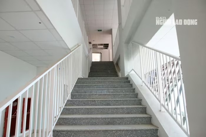 Hệ thống cầu thang lên nhà thi đấu được đầu tư hoàn thiện, đảm bảo an toàn và mỹ quan. |