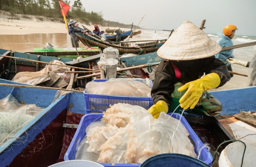 Với ngư dân vùng bãi ngang, mùa sứa được xem là như “mùa vàng” nhưng với họ đó là mùa "khắc nghiệt" bởi cường độ lao động trên biển của họ.