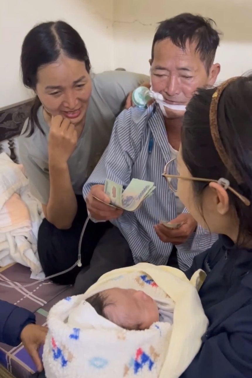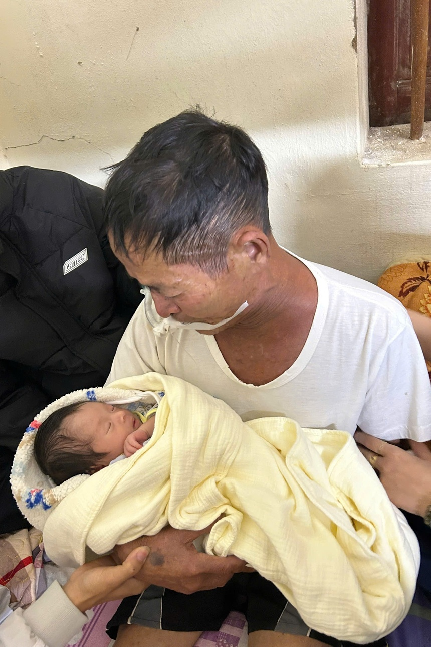 "Hôm bệnh viện trả bố về, tôi cố gắng cho con về chào ông lần đầu cũng là lần cuối. Ông mong cháu, mừng lắm vì có cháu nội mà lại không kịp chơi với cháu ngày nào. Tuy nhiên, cả nhà vẫn thấy biết ơn vì ông kịp bế em bé", chị Giang trải lòng.