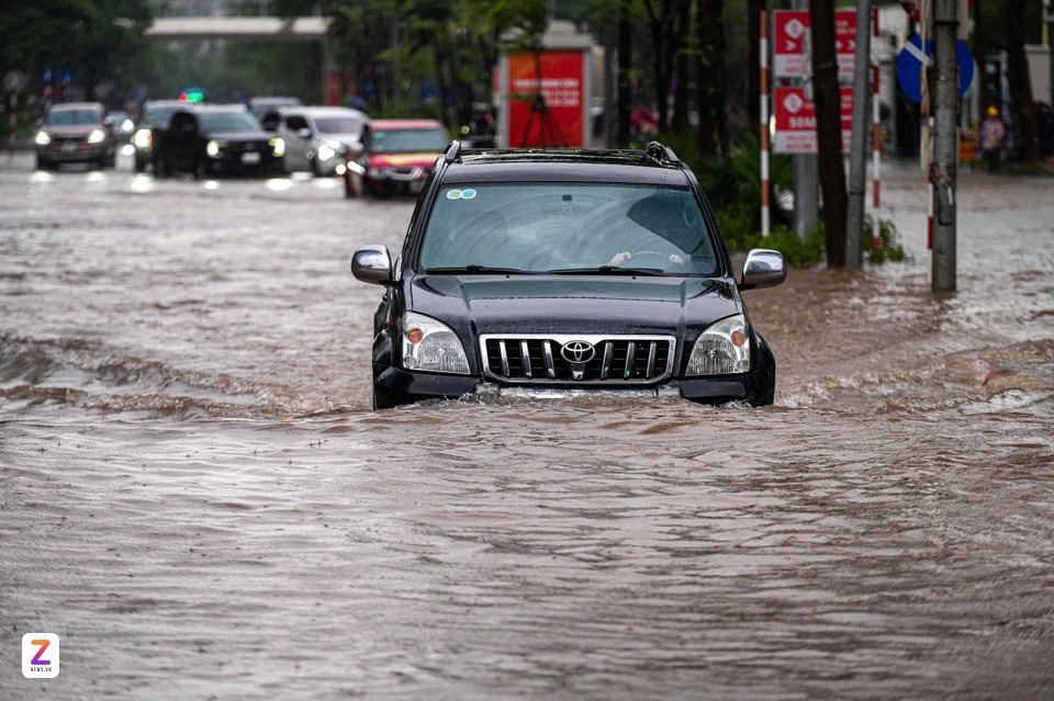Ôtô lội nước tại TP Hà Nội sau mưa ngập. Ảnh: Việt Hà.
