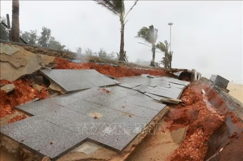 Sóng đánh làm trượt, đứt gãy bê tông tường kè. |
