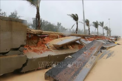 Bờ kè của bãi tắm bị hư hỏng nặng do mưa bão. |