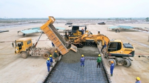 Thi công sân đỗ Cảng hàng không Quảng Trị. Ảnh: Đăng Đức |