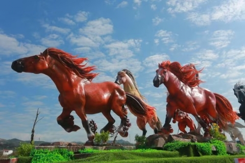 8 "linh vật" ngựa được tạo hình theo bức phong thủy nổi tiếng “mã đáo thành công.” (Ảnh: Thanh Thủy/TTXVN) |