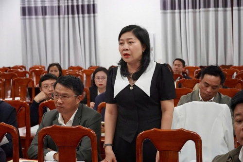 Đại biểu xã, phường phát biểu ý kiến tại hội nghị. Ảnh: Khánh Trinh |