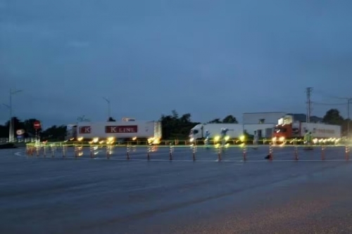 Dải cọc mềm tạm tại nút giao thông QL 9A giao nhau với cao tốc Vạn Ninh- Cam Lộ đã hoàn thành đưa vào sử dụng |
