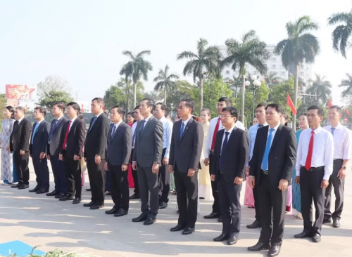 Lãnh đạo tỉnh Quảng Trị và đại diện các sở, ngành, địa phương dự Lễ dâng hoa, dâng hương tại Công viên Lê Duẩn, phường Đông Hà. |