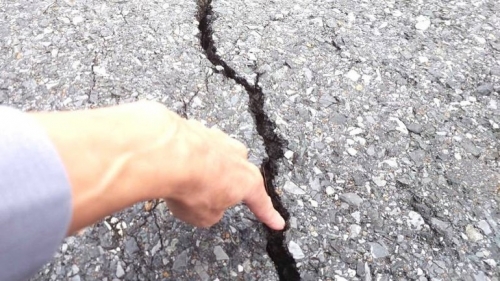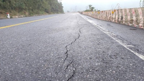 Vết nứt dọc theo mặt đường trên Quốc lộ 1 đoạn qua đèo Ngang, nối 2 tỉnh Quảng Trị và Hà Tĩnh. |