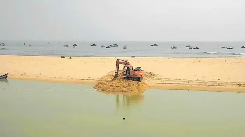 Khi mực nước trong sông dâng cao, địa phương sẽ đào lạch chính giữa dòng sông Dinh để nước đẩy cát ra biển; đồng thời dùng máy đào cửa mới cắt qua cồn cát, nối sông Dinh với biển.