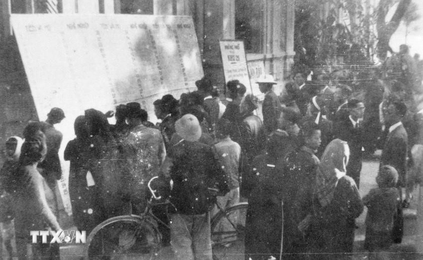 Chỉ sau 5 tháng giành được độc lập, hưởng ứng lời kêu gọi của Chủ tịch Hồ Chí Minh, với tinh thần yêu nước và khí thế hào hùng của Cách mạng tháng Tám, tất cả công dân Việt Nam từ 18 tuổi trở lên trên khắp mọi miền Tổ quốc, không phân biệt nam, nữ, giàu nghèo, dân tộc, tôn giáo đã tham gia cuộc tổng tuyển cử đầu tiên bầu ra Quốc hội theo nguyên tắc dân chủ, tiến bộ nhất. (Nguồn: Tư liệu TTXVN) |