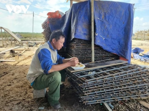 Công nhân miệt mài lao động trong nắng hanh ngày đầu năm mới |