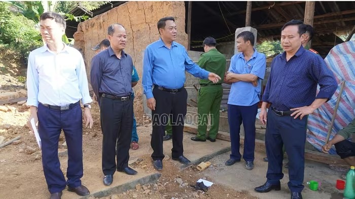 Lãnh đạo xã tới thăm hỏi, động viên gia đình (ảnh Báo Lào Cai)