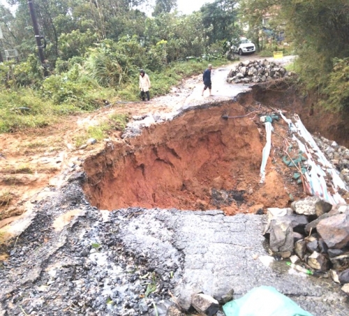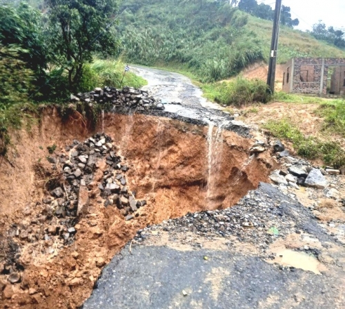 Sau mưa lớn, tỉnh lộ 587 xuất hiện nhiều điểm sạt trượt, gây nguy hiểm cho người tham gia giao thông |