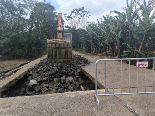 Theo ghi nhận, tại Km 1+588 tỉnh lộ 587 mặt đường bê tông bị nước xói gây sạt ta luy âm, hở hàm ếch. Tại Km 6+300 bị xói lở, sạt ta-luy âm tạo thành hố sâu 3-5 m, kéo dài hơn 20 m, mặt đường hiện tại chỉ còn khoảng 1 m.