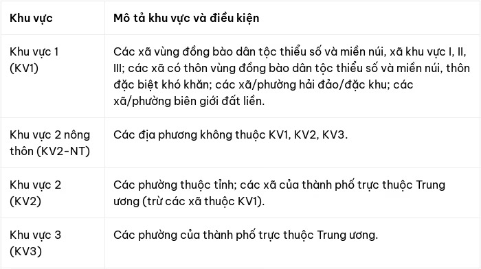 Cụ thể, khu vực ưu tiên như sau trong tuyển sinh đại học, cao đẳng năm 2026 như sau: