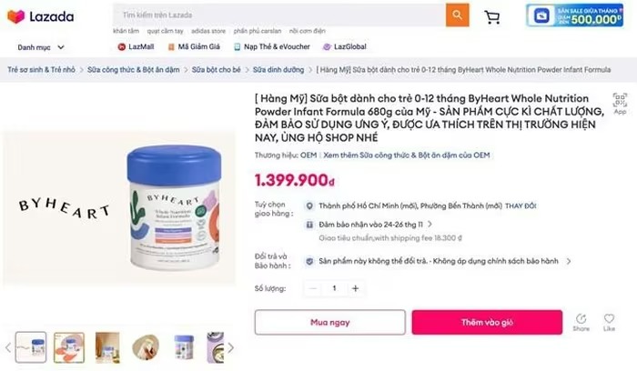 Sản phẩm sữa công thức ByHeart Whole Nutrition từng được bán trên một số sản thương mại |