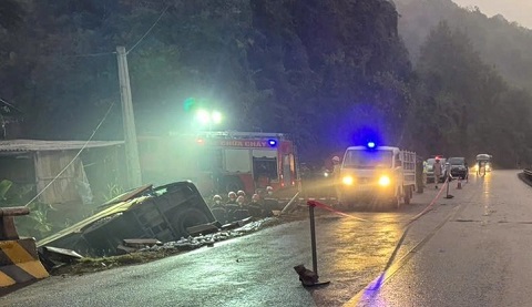 Xe khách lật trên quốc lộ trong trời mưa mù, 4 người chết tại chỗ