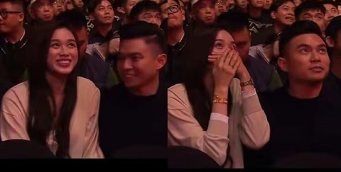 Hoa hậu Đỗ Thị Hà và chồng thiếu gia gây chú ý trong khoảnh khắc lọt ống kính máy quay trực tiếp