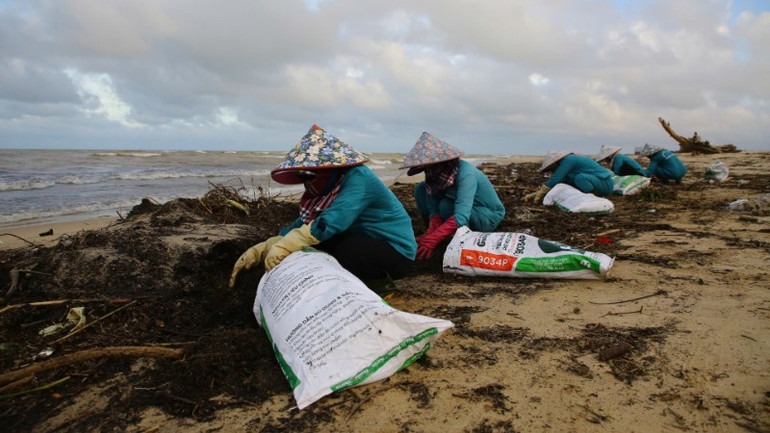 Quảng Trị: Nỗ lực dọn rác, làm sạch bãi biển Nhật Lệ sau bão số 10
